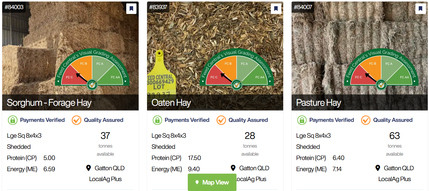 Every lot on the LocalAg Website that has been inspected and tested by Feed Central is given a visual grade and presented as per the screen shots below.